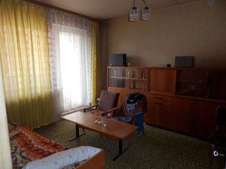 Dispoziční řešení: Byt o velikosti 1+3 sestává z předsíně, kuchyně, tří pokojů, koupelny, WC a loggie (3,7 m2).